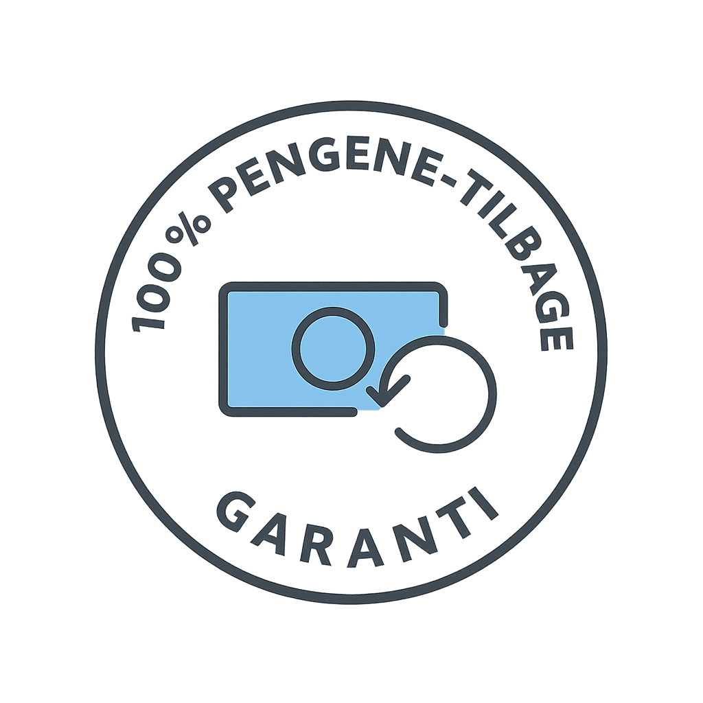 Vi tilbyder en 100% pengene-tilbage-garanti inden for 14 dage efter modtagelsen af din ordre.